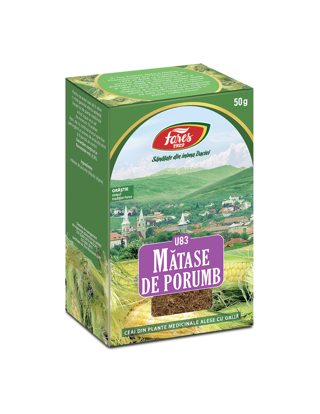 Ceaiul de Mătase de Porumb de la Fares este un produs natural 100% obținut din stigmatele florilor de porumb (Zea mays). Are proprietăți diuretice, depurative și antiinflamatoare, fiind utilizat tradițional pentru susținerea funcției rinichilor și a sistemului urinar.