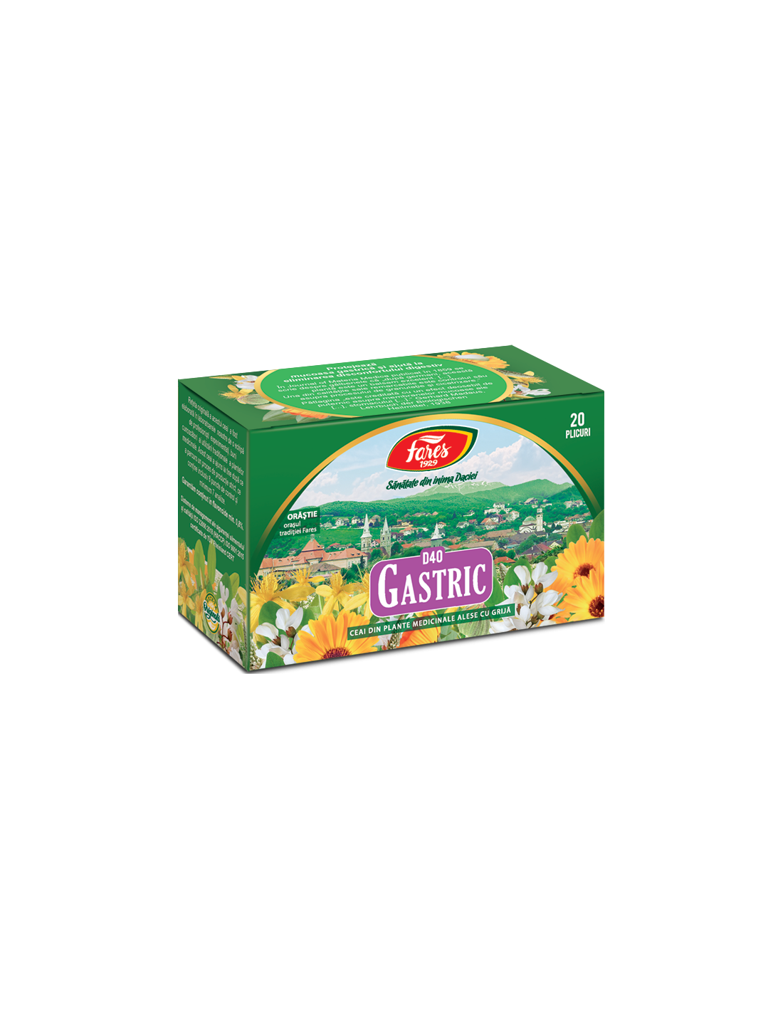 Ceai Gastric – 20 plicuri (Fares) este un amestec tradițional de plante medicinale atent selecționate, care contribuie la menținerea sănătății stomacului și la echilibrul digestiv. Formula este recomandată în caz de disconfort gastric, arsuri și digestie dificilă.