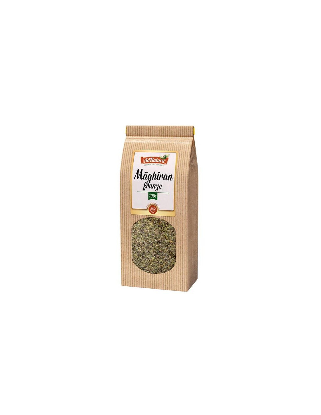 Pungă sigilată cu 100 g frunze de maghiran – brand AdNatura.