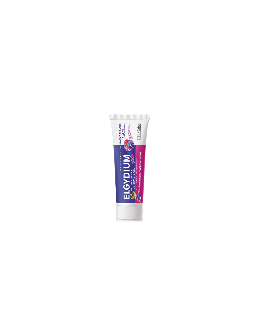 Tub de 50 ml, ambalaj colorat cu personaje atractive pentru copii (gama Elgydium Kids).