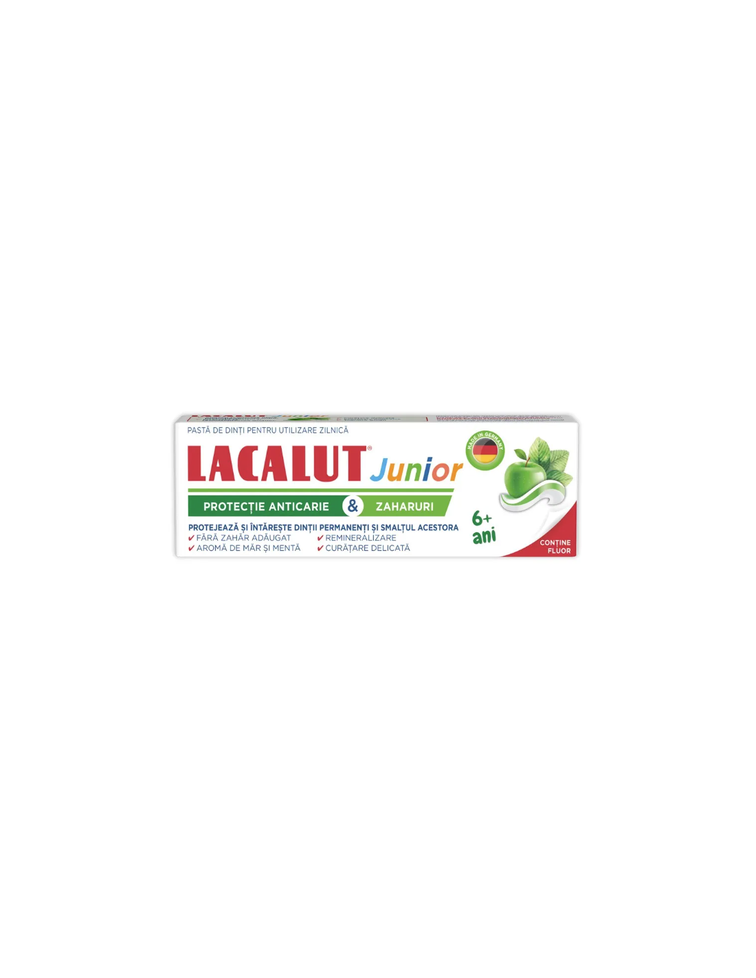 - Copiii sub 6 ani trebuie supravegheați în timpul periajului pentru a evita înghițirea pastei. ([drmax.ro](https://www.drmax.ro/pasta-de-dinti-junior-6-ani-55ml-lacalut?utm_source=chatgpt.com))