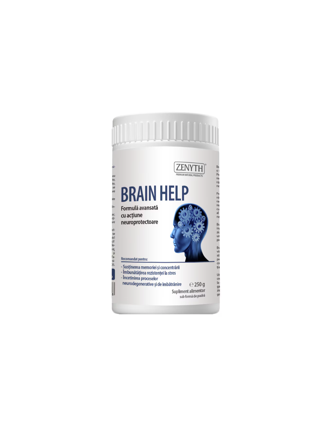 Brain Help – 250 g, Zenyth este un supliment alimentar sub formă de pulbere, cu acțiune neuroprotectoare, dezvoltat pentru susținerea memoriei, clarității mentale, concentrării și funcției neurologice normale.