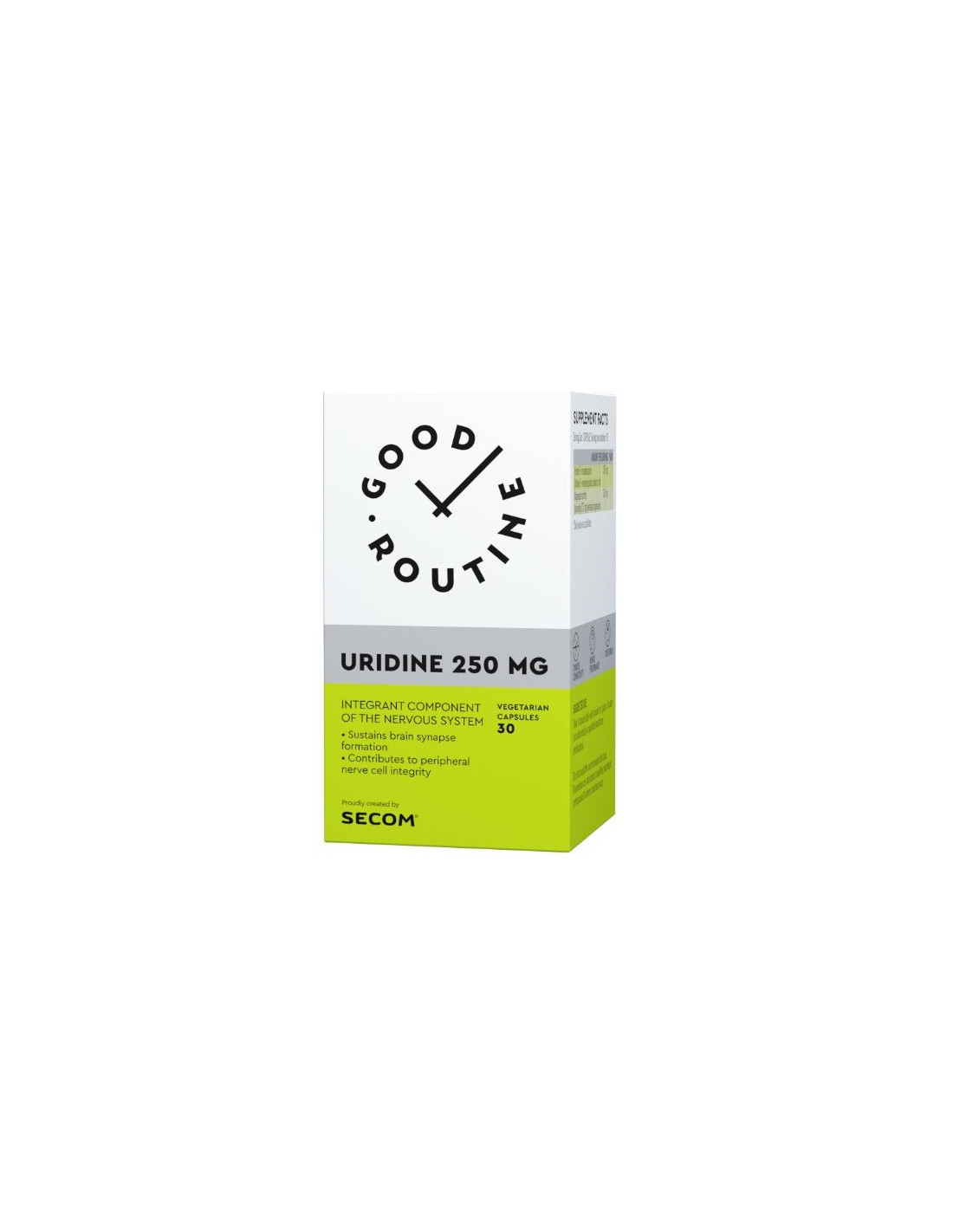 Uridine 250 mg – 30 capsule vegetale (Good Routine) este un supliment destin în special susținerii funcțiilor neurologice și cognitive, utilizând uridină sub formă de uridin-5-monofosfat disodic.