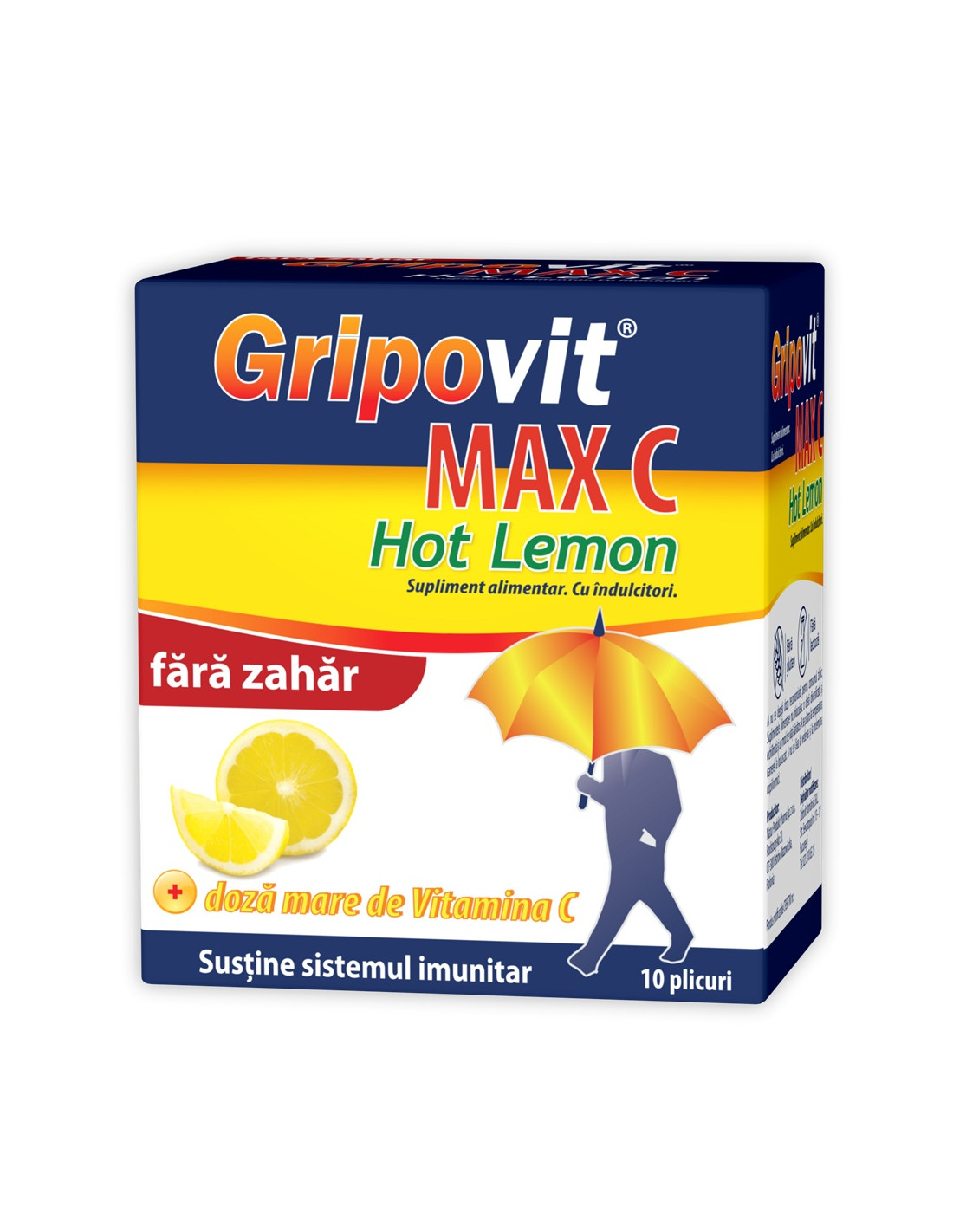 Gripovit Max Hot Lemon fara zahar, 10 plicuri, Zdrovit este o solutie eficienta pentru ameliorarea simptomelor de raceala si gripa, oferind confort rapid si sustinere imunitara, fiind in acelasi timp potrivita pentru persoanele care doresc sa evite consumul de zahar.