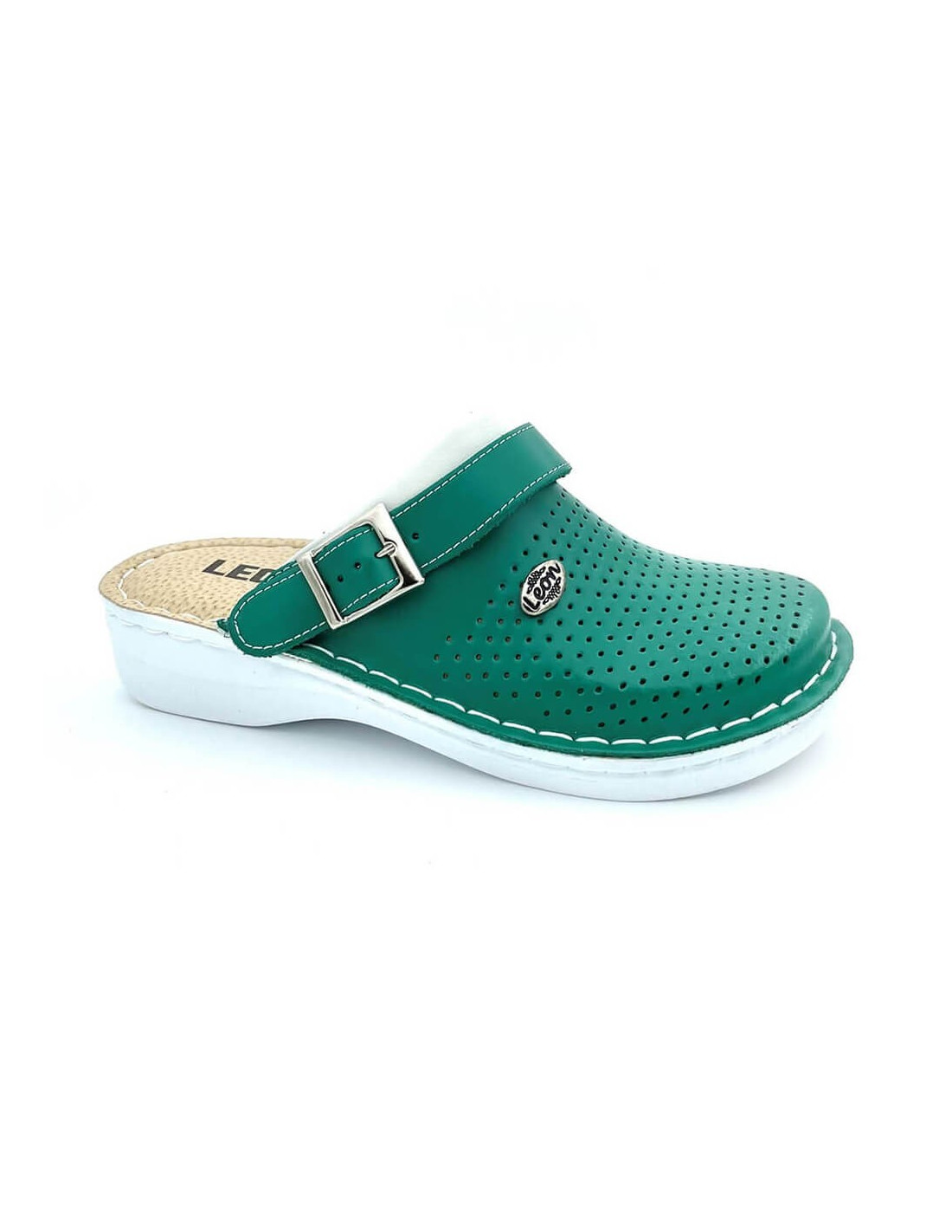 Saboti medicali din piele Leon V202 verde sunt concepuți special pentru confortul profesional al cadrelor medicale, farmacistelor și personalului care petrece multe ore în picioare. Produsul este fabricat din piele naturală, cu talpă anatomică din plută și inserție din latex ce oferă susținere optimă a boltei plantare. Mărimea: 39