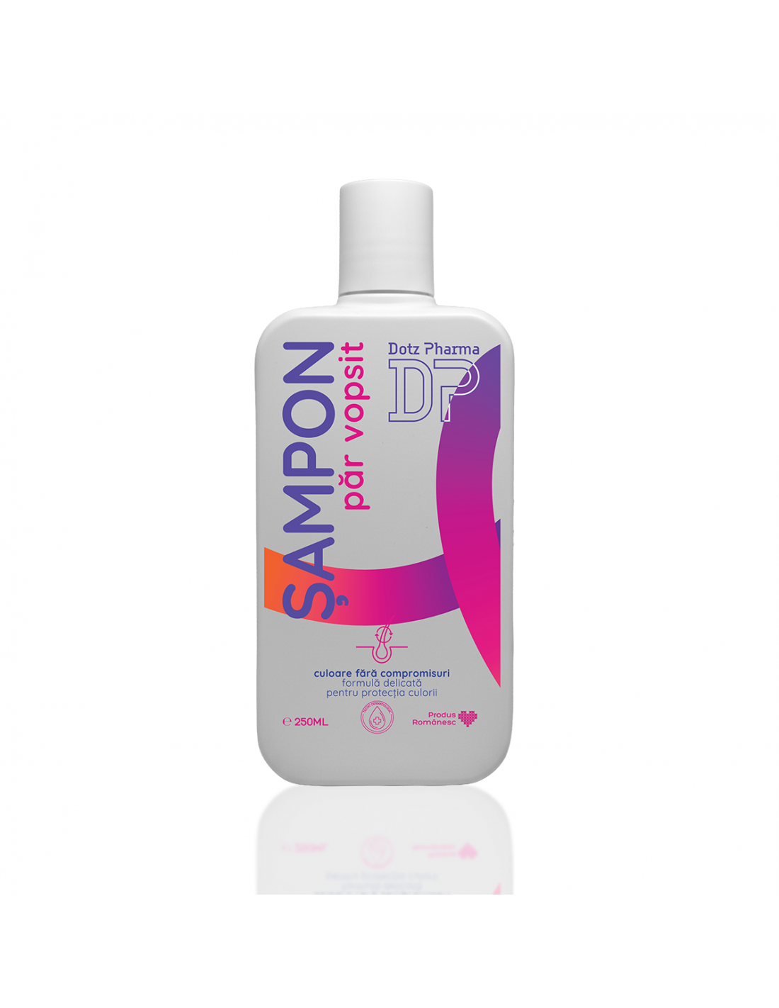 Șampon pentru păr vopsit, 250 ml - Dotz Pharma este creat special pentru îngrijirea părului colorat, oferind protecție culorii și strălucire de durată. Formula sa delicată curăță eficient, fără a agresa fibra capilară și fără a estompa nuanța obținută prin vopsire.