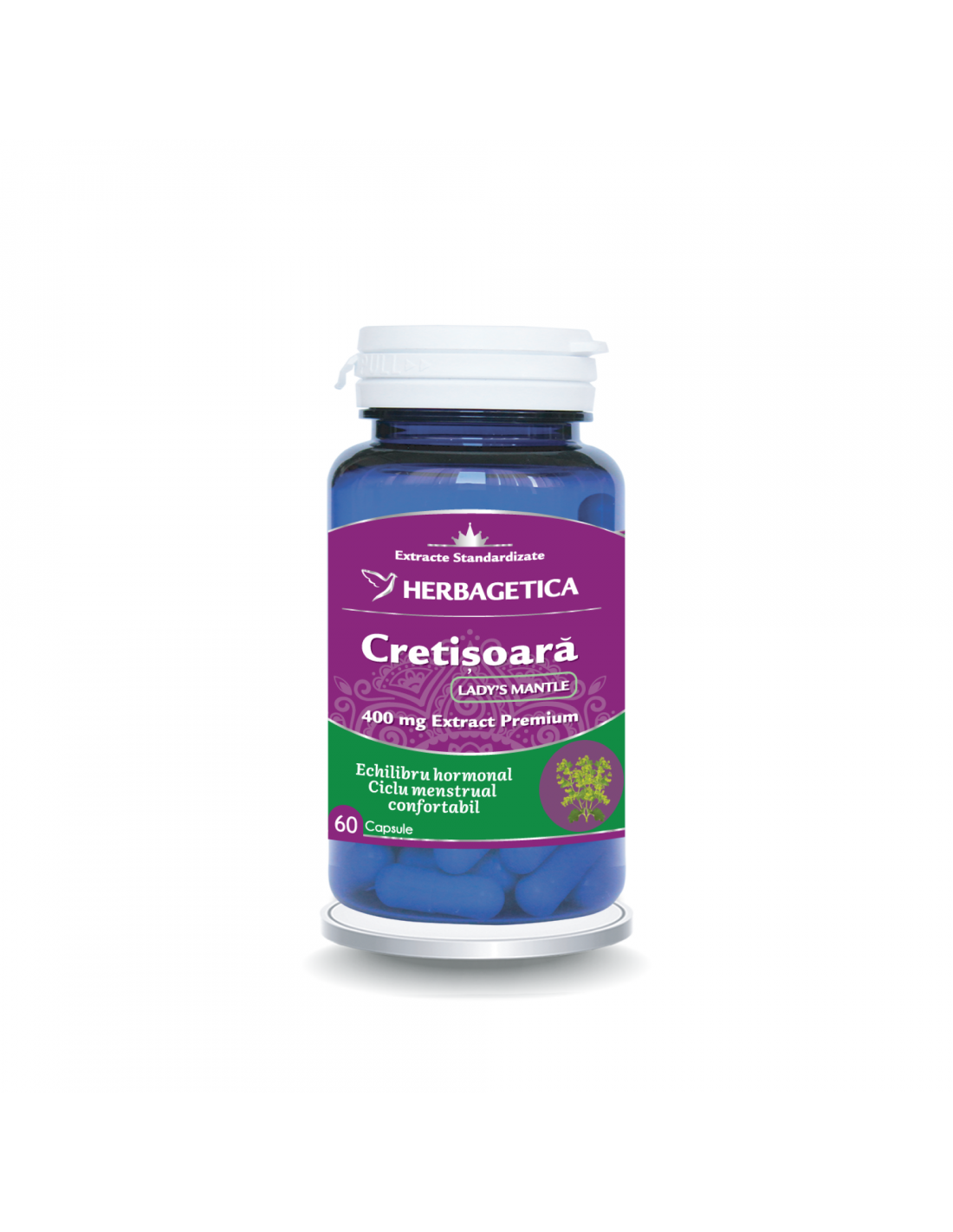 Crețișoară Lady’s Mantle este un supliment pe bază de extract de Crețișoară (Alchemilla vulgaris) 5:1, 400 mg/capsulă, creat pentru confortul femeilor înainte și în timpul ciclului menstrual, precum și în perioada de tranziție la menopauză.