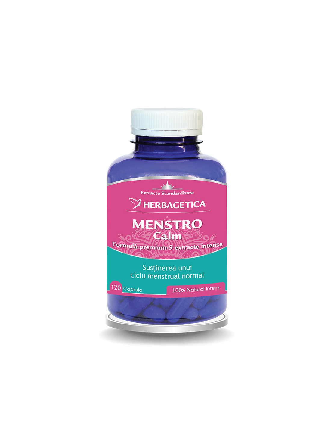 MenstroCalm – Herbagetica este un complex natural cu 9 extracte concentrate, creat pentru a reda confortul fizic și emoțional înainte și în timpul menstruației. Formula sa reglează echilibrul hormonal, reduce crampele, susține energia și protejează sistemul reproducător feminin.