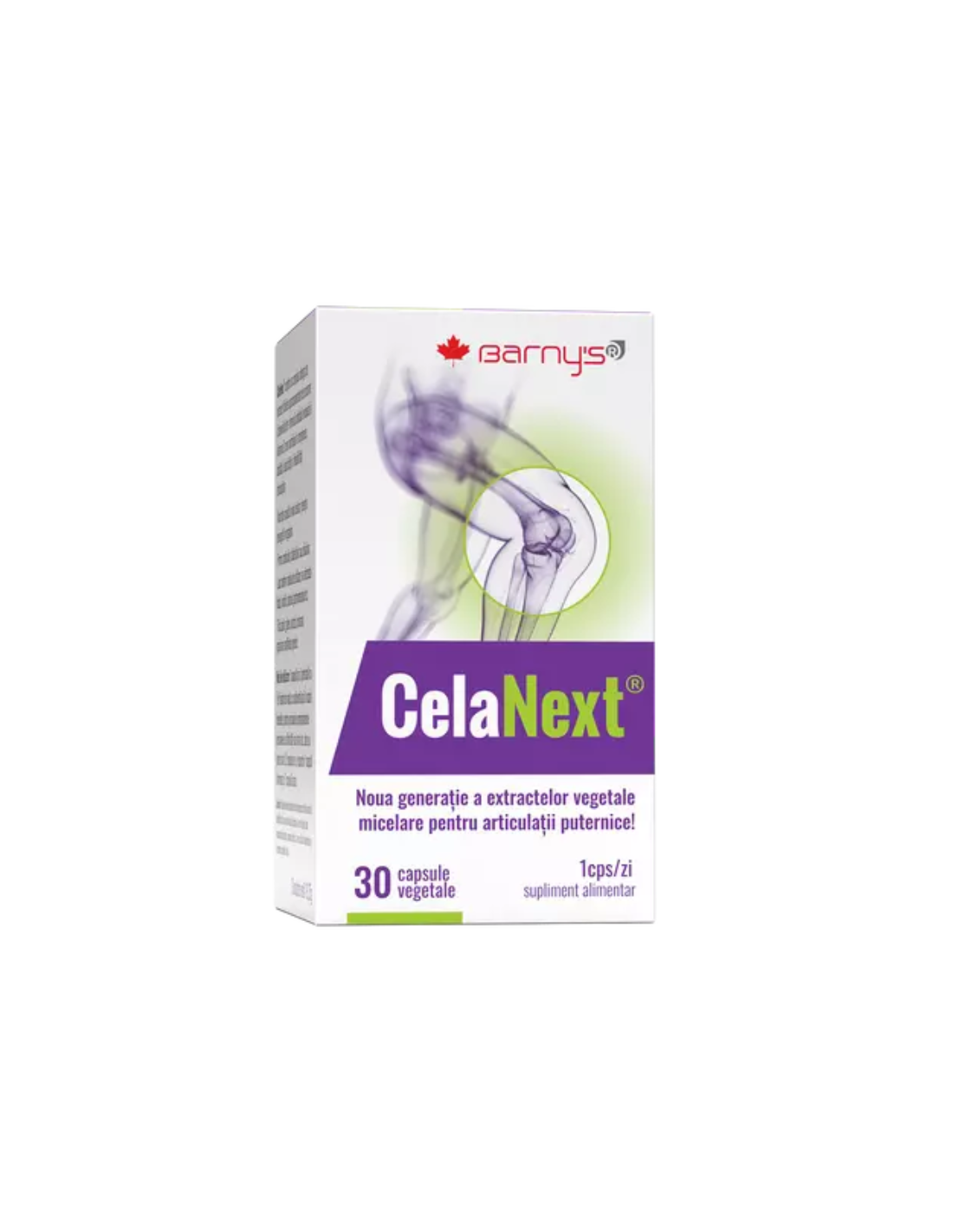 Barny’s CelaNext 30 capsule este un supliment alimentar formulat pentru a susține sănătatea articulațiilor, flexibilitatea și mobilitatea. Produsul conține o combinație concentrată de extrase vegetale de turmeric (Curcuma longa) și boswellia (Boswellia serrata) în formă micelară, îmbunătățind absorbția, plus vitamina D3 pentru suport osos.