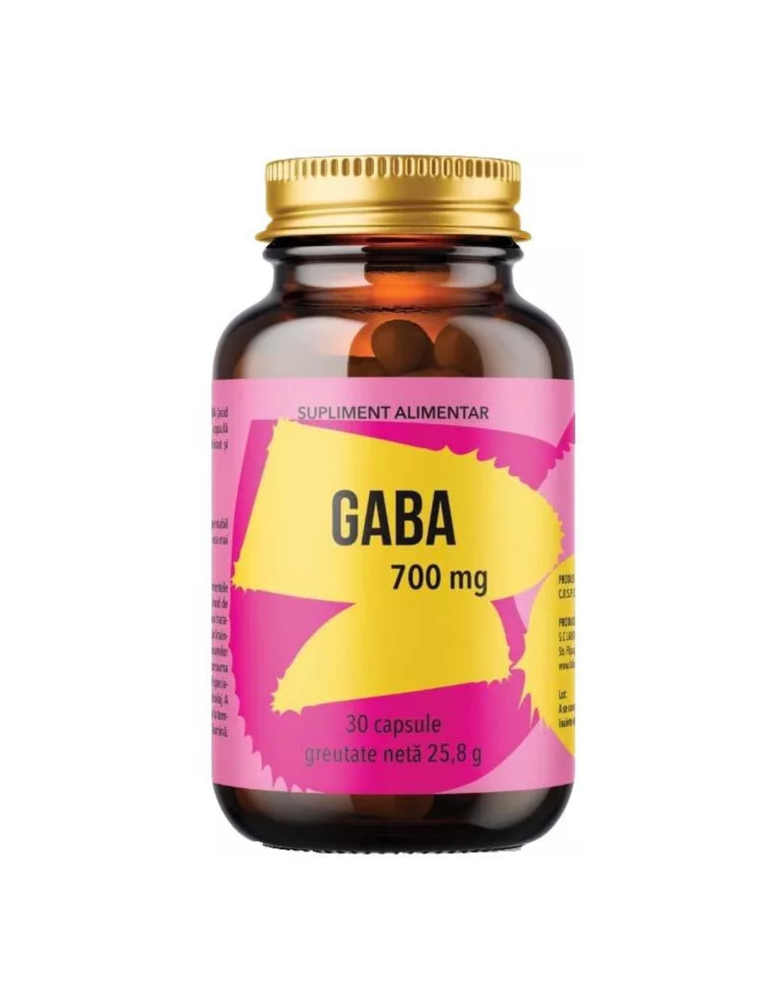 - Acid gamma-aminobutiric (GABA) – 700 mg/capsulă;