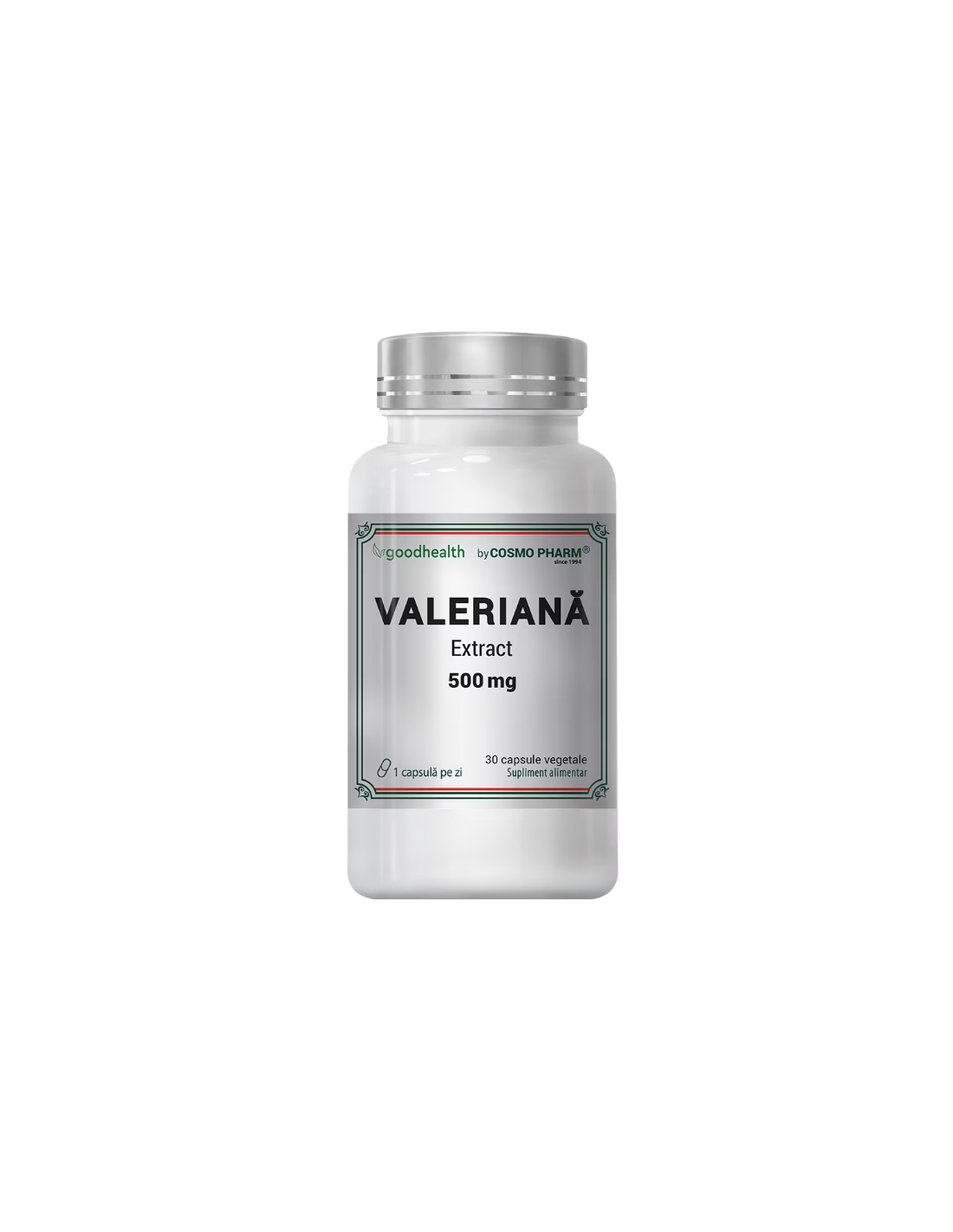 Valeriana (Valeriana officinalis) — extract 4:1 din rădăcină, 500 mg per capsulă.