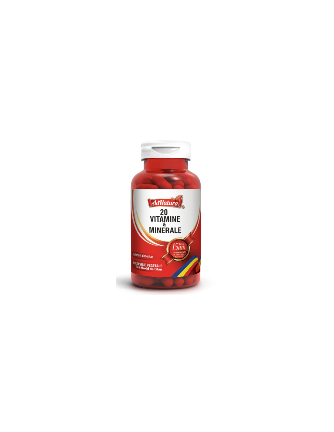 AdNatura 20 Vitamine și Minerale – 30 capsule este un supliment alimentar complex, special formulat pentru a asigura aportul zilnic de micronutrienți esențiali. Contribuie la susținerea imunității, energiei și vitalității, ajutând organismul să facă față perioadelor de stres, efort și oboseală.