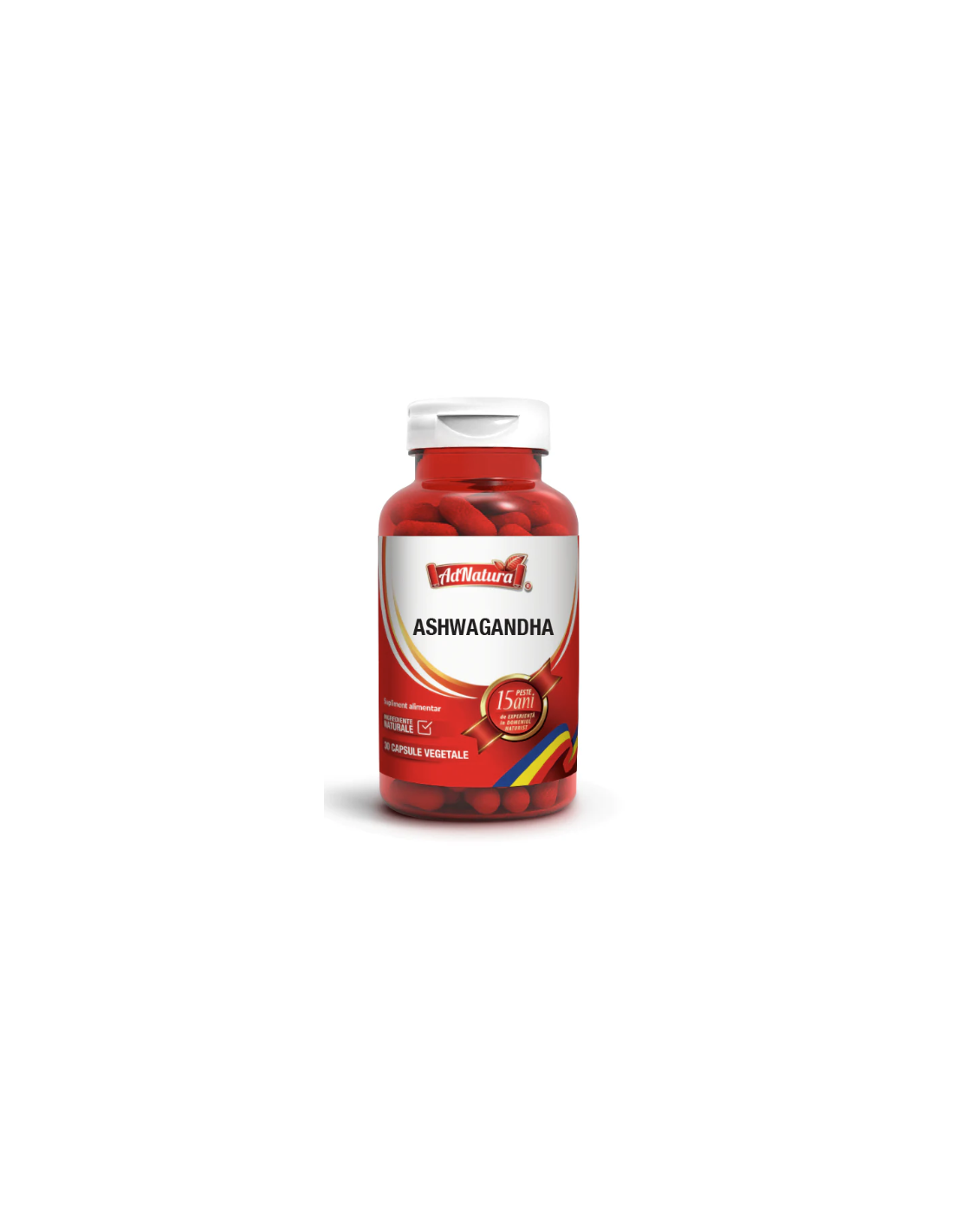 AdNatura Ashwagandha – 30 capsule este un supliment alimentar adaptogen obținut din extract concentrat de Withania somnifera (Ashwagandha), plantă recunoscută pentru capacitatea sa de a sprijini echilibrul organismului, de a combate stresul și de a stimula vitalitatea fizică și mentală.