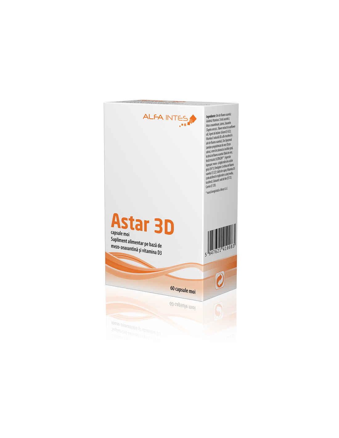 Astar 3D este un supliment alimentar sub formă de capsule moi, dezvoltat de Alfa Intes pentru susținerea sănătății și protecției maculei în fața stresului oxidativ și a luminii albastre.