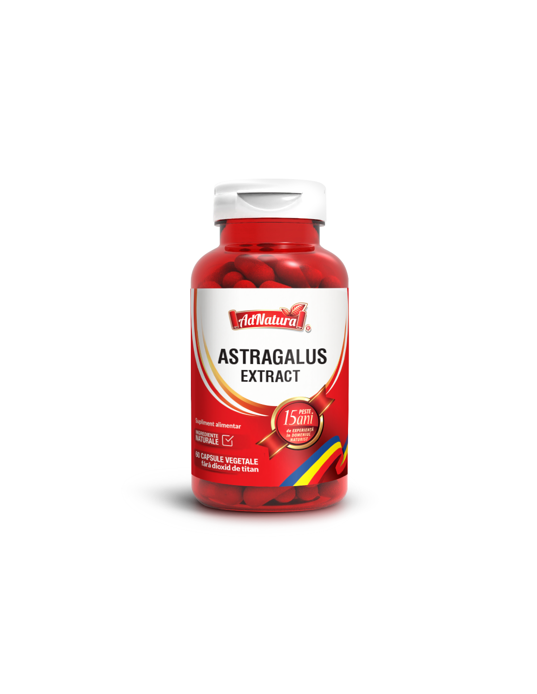 AdNatura Astragalus extract – 60 capsule este un supliment alimentar natural cu extract concentrat din rădăcină de Astragalus membranaceus, plantă utilizată tradițional în medicina chineză pentru stimularea imunității, creșterea energiei și protejarea organismului împotriva stresului fizic și mental.