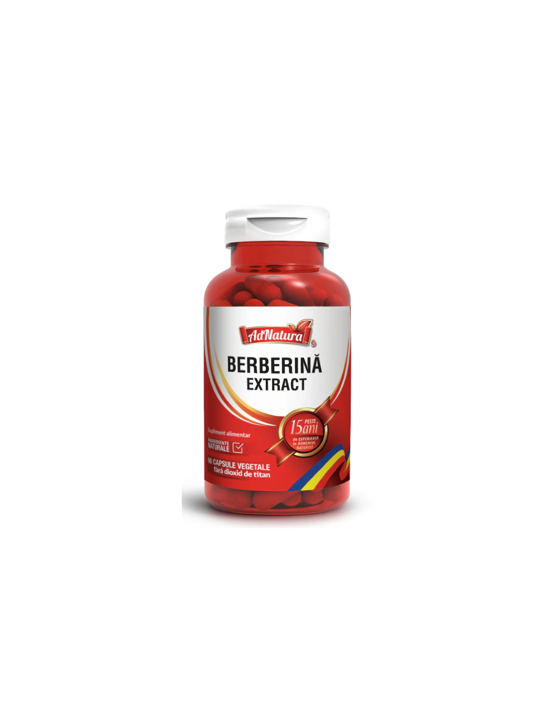 AdNatura Berberină extract – 60 capsule este un supliment alimentar natural cu acțiune benefică asupra metabolismului glucidic și lipidic. Extractul standardizat de Berberis aristata contribuie la menținerea nivelului normal de zahăr și colesterol din sânge, sprijinind în același timp digestia și funcția hepatică.