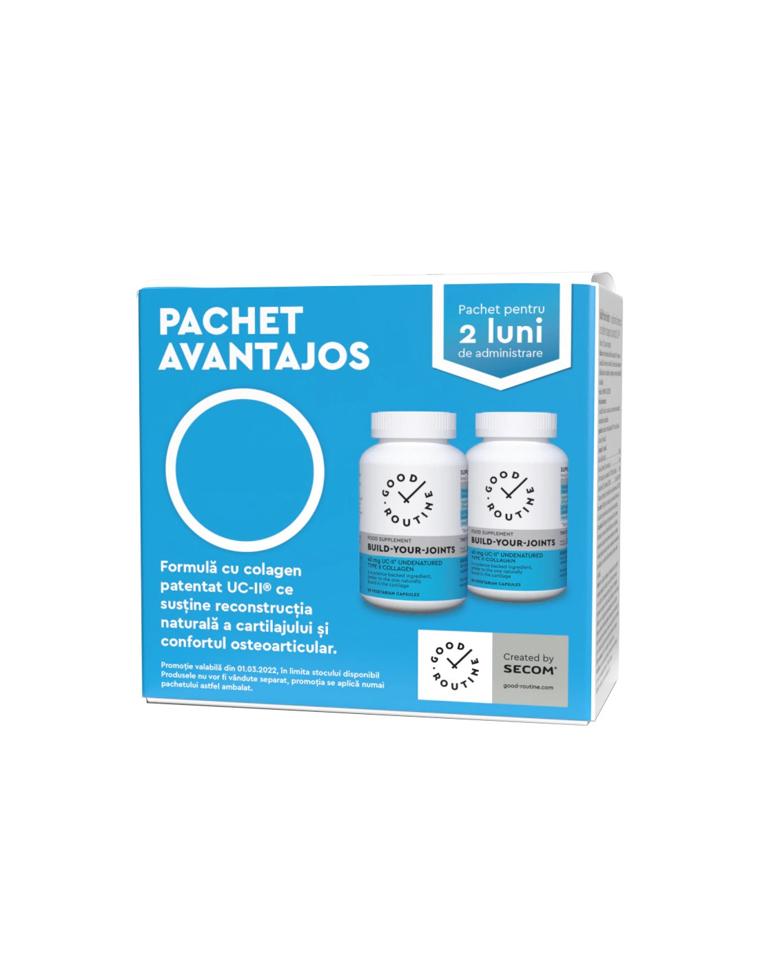 Build Your Joints – Pachet 2x30 capsule (Good Routine by Secom) este o formulă completă pentru sănătatea articulațiilor și oaselor, creată pentru a susține mobilitatea, rezistența și confortul articular. Pachetul conține două cutii de câte 30 capsule, oferind o cură completă.