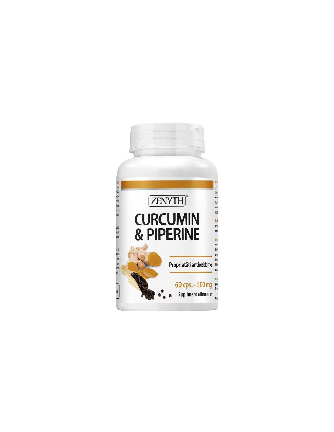 Curcumin & Piperine 500 mg – 60 capsule, Zenyth este un supliment alimentar 100 % natural ce combină extract standardizat de turmeric (Curcuma longa) cu piperină pentru o absorbție mult mai bună.