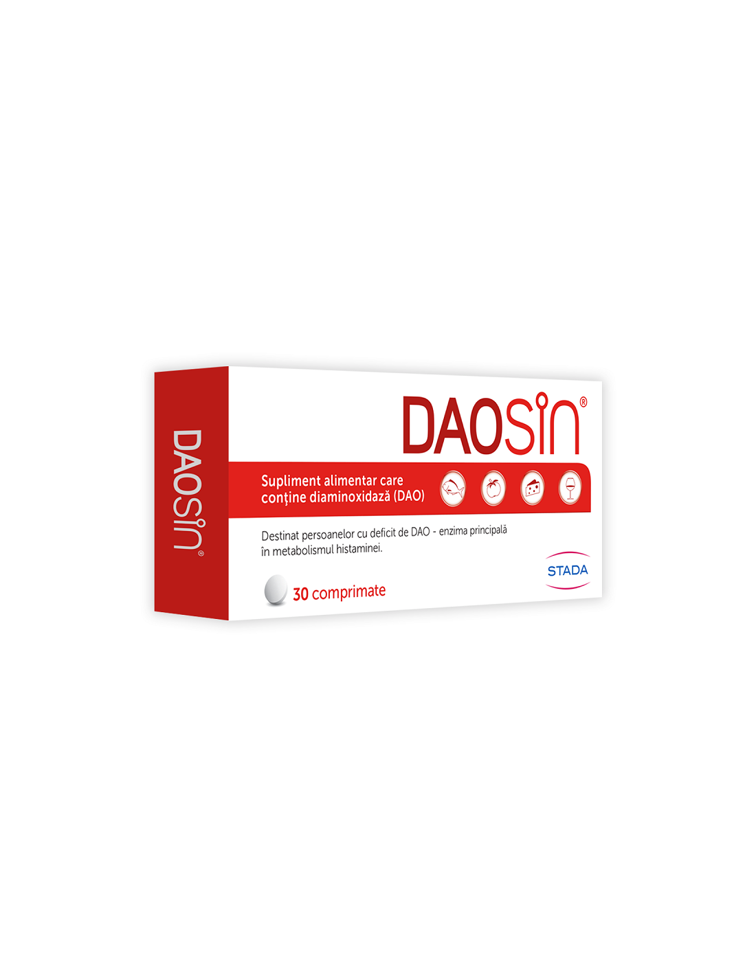 Daosin 30 comprimate este un supliment alimentar Stada, care conține enzima diaminooxidază (DAO). Produsul este destinat persoanelor care au dificultăți în degradarea histaminei provenite din alimente.