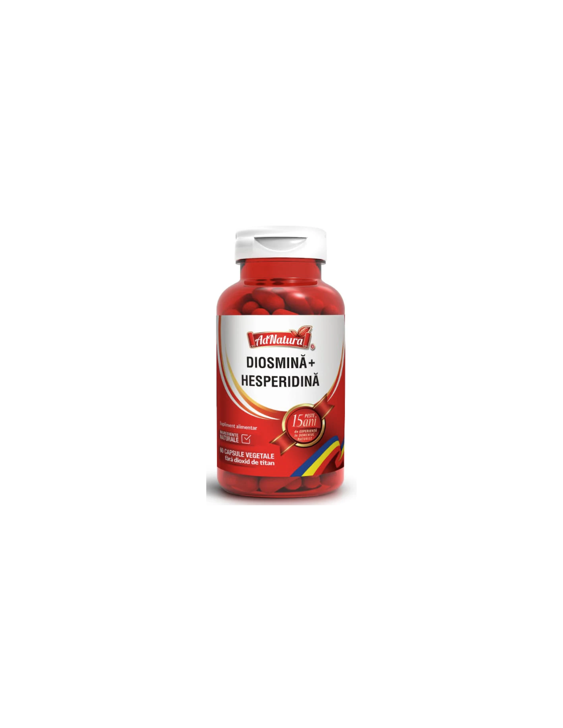 AdNatura Diosmina + Hesperidina – 60 capsule este un supliment alimentar conceput pentru susținerea circulației venoase și a microcirculației capilare. Conține un complex natural de bioflavonoide – diosmină și hesperidină – cu acțiune benefică asupra tonusului venos și a permeabilității capilarelor.