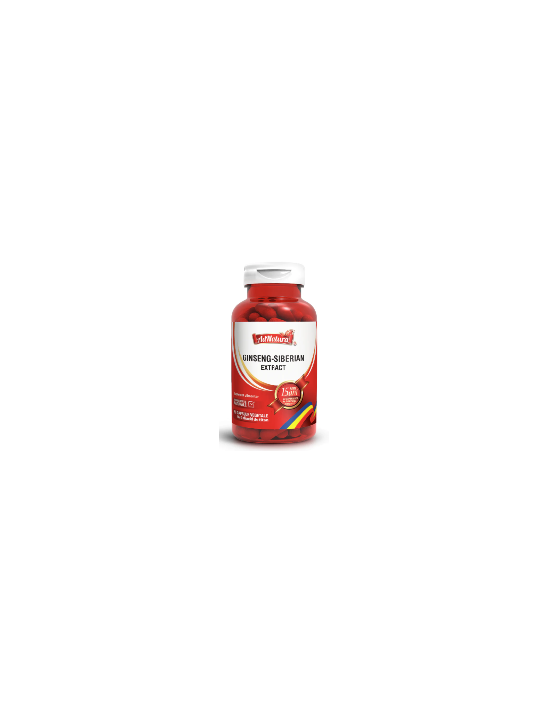 AdNatura Ginseng Siberian extract – 60 capsule este un supliment alimentar adaptogen care ajută organismul să facă față stresului fizic și mental. Conține extract standardizat de Eleutherococcus senticosus, cunoscut sub numele de Ginseng Siberian, recunoscut pentru proprietățile sale tonice și revitalizante.