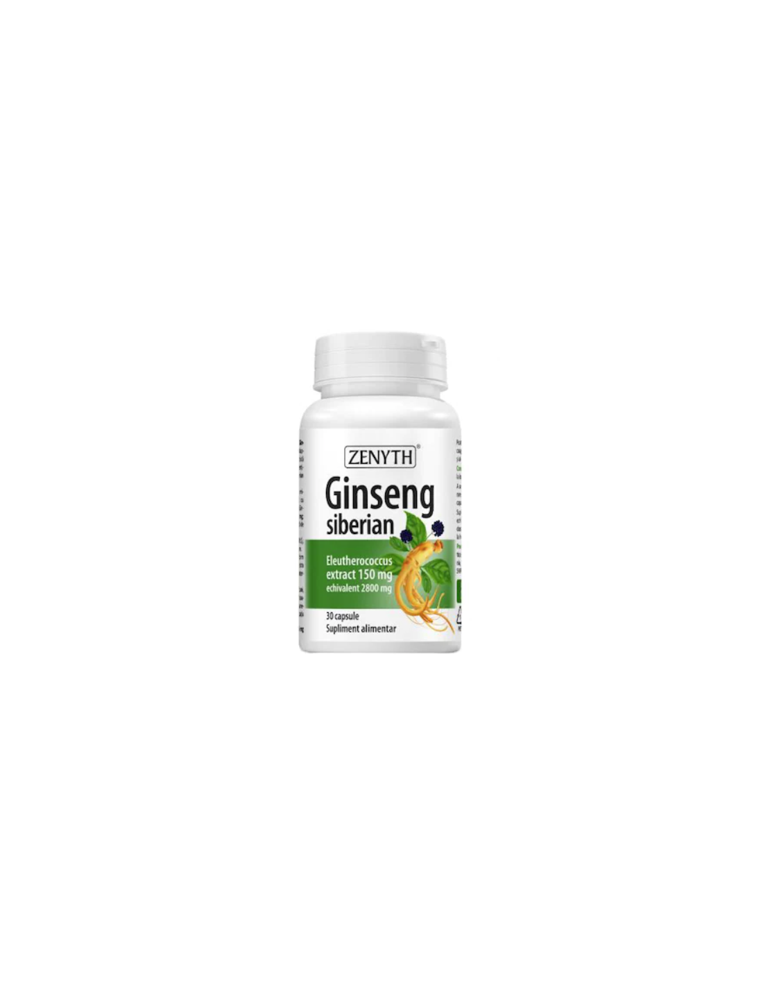 Ginseng siberian 150 mg – 30 capsule, Zenyth este un supliment alimentar care conține extract standardizat din rădăcină de Eleutherococcus senticosus (ginseng siberian), cunoscut ca adaptogen și tonic general.