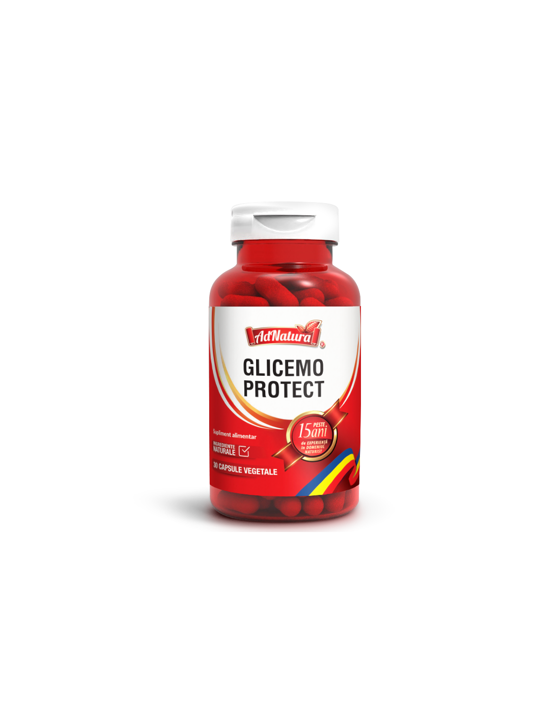 AdNatura Glicemo Protect – 30 capsule este un supliment alimentar cu extracte vegetale atent selecționate, ce contribuie la menținerea nivelului normal al glucozei în sânge și la buna funcționare a metabolismului glucidic.