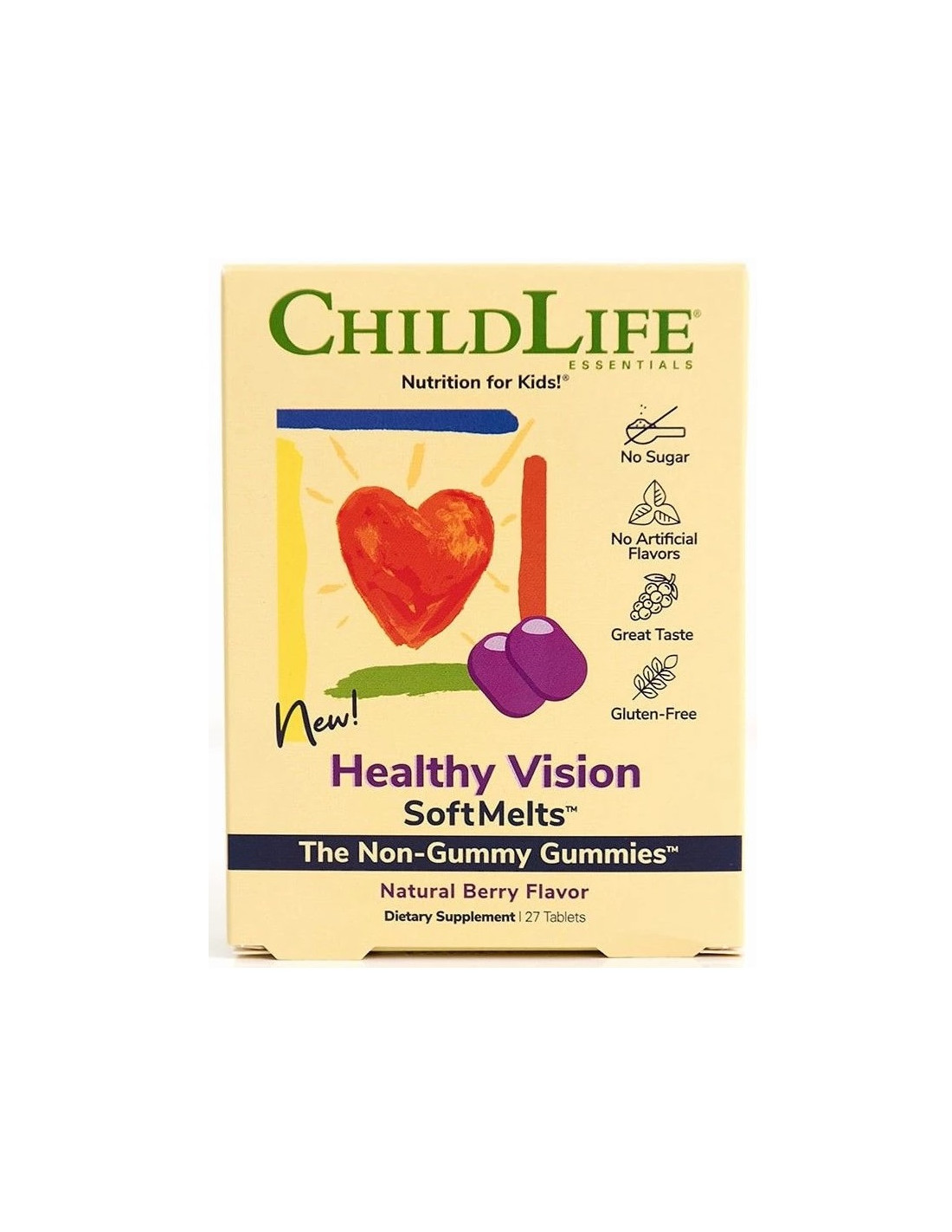 ChildLife Healthy Vision SoftMelts – 27 tablete (Natural Berry) este un supliment alimentar special conceput pentru sprijinul sănătății ochilor la copii. Formula combină extract de afin (bilberry), luteină și zeaxantină cu vitamina A, într-un format SoftMelt – tablete non-gummy, fără zahăr și fără gluten.*