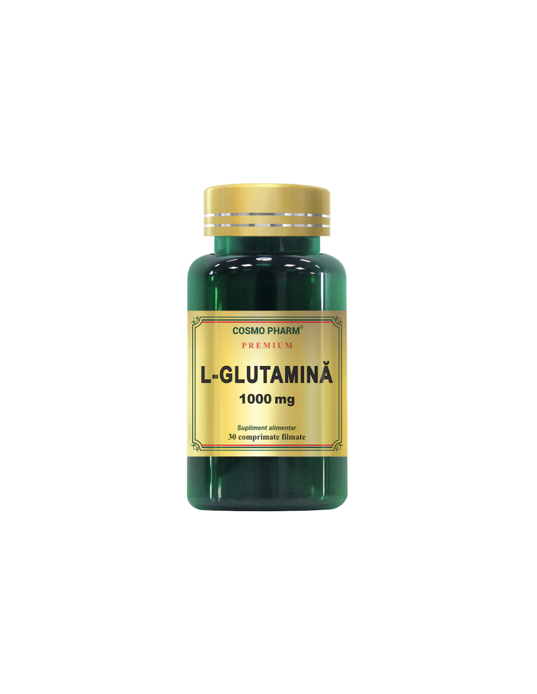 L-Glutamina 1000 mg – 30 comprimate este un supliment alimentar disponibil de la Cosmopharm, care oferă 1 000 mg L-glutamină per comprimat.