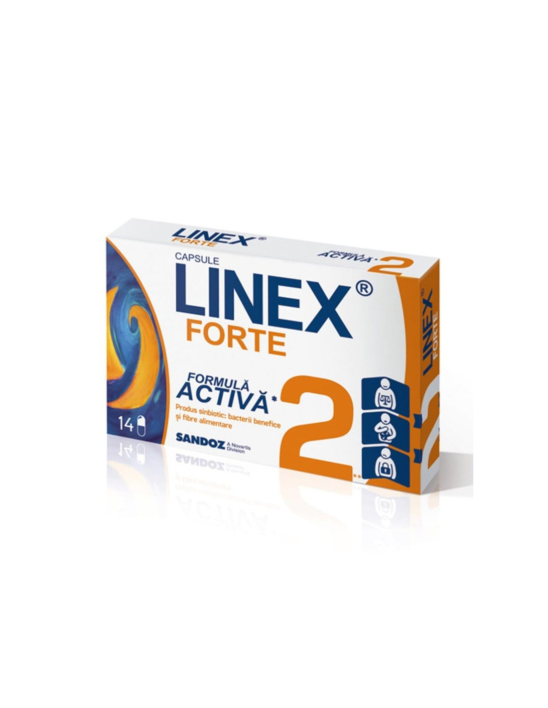 Linex Forte – 14 capsule (Sandoz) este un supliment alimentar care conţine tulpini de bacterii benefice ce ajută la refacerea şi menţinerea echilibrului florei intestinale. Produsele probiotice precum Linex Forte sunt utile în special după tratamente cu antibiotice, în perioade de stres, sau când dieta este dezechilibrată.