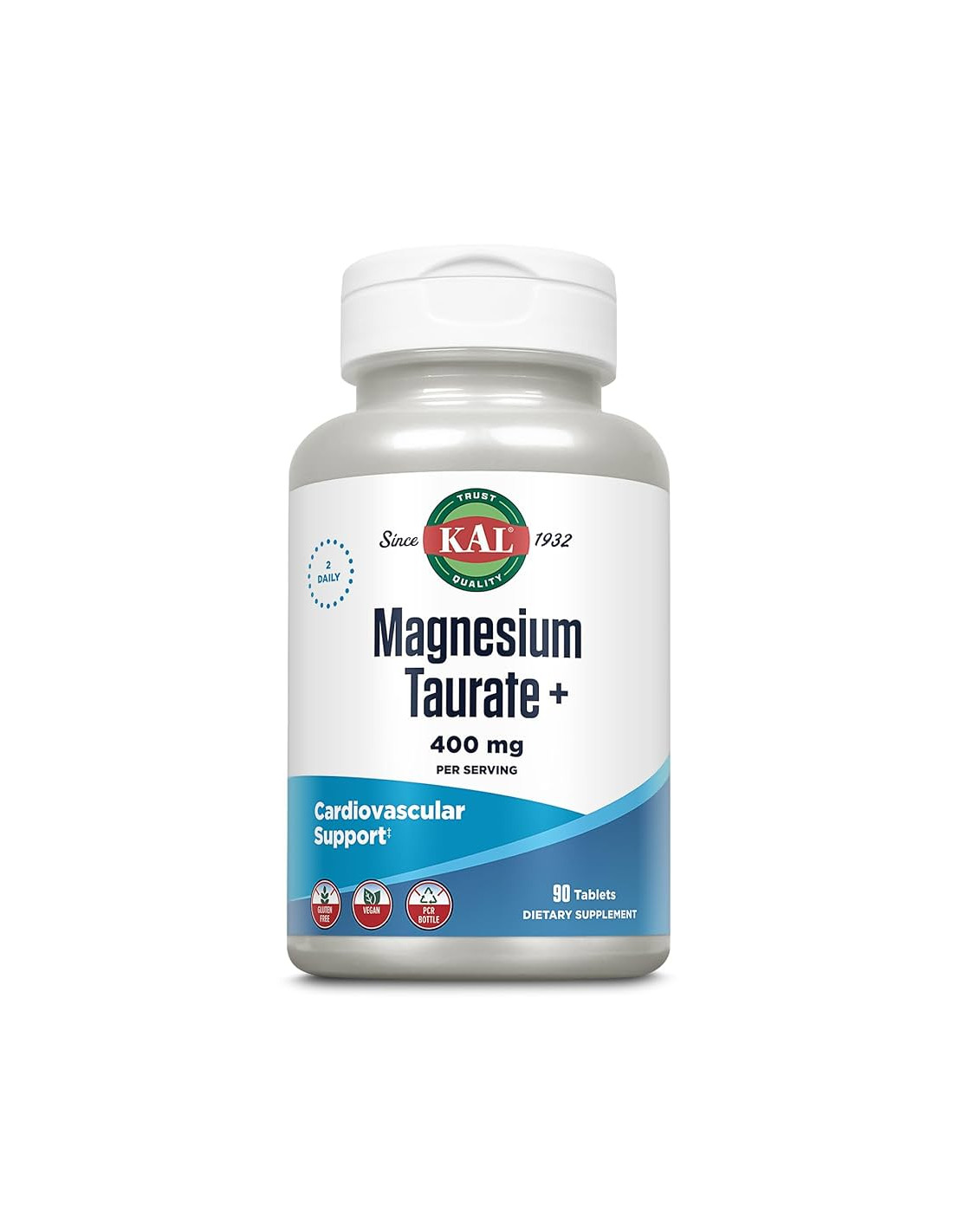 KAL Magnesium Taurate+ 400 mg – 90 tablete este un supliment alimentar care furnizează magneziu sub forma sa chelată cu taurină – „magnesium taurate” – pentru o absorbție mai eficientă și susținere cardiovasculară și neuromusculară. *