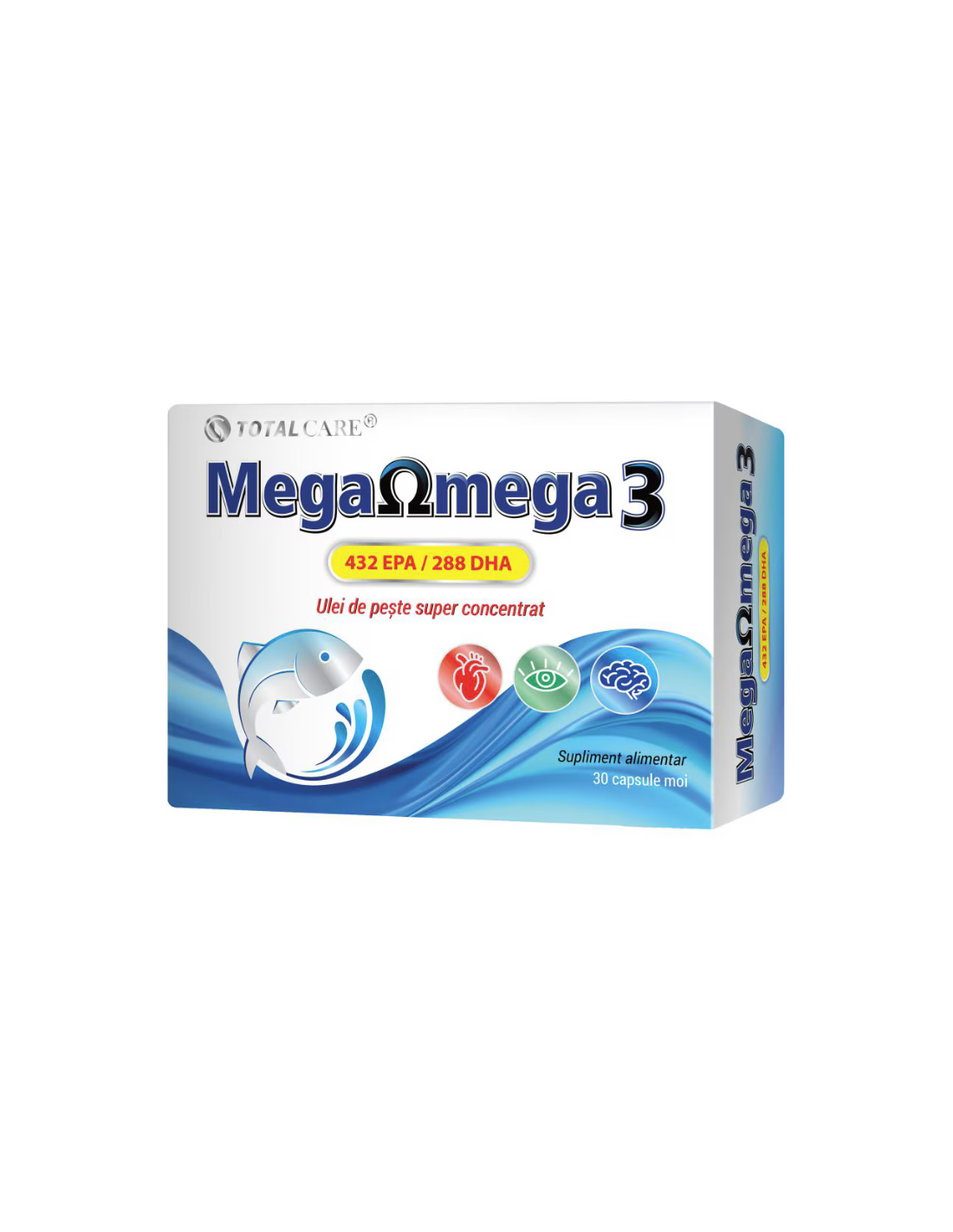 Mega Omega 3 – 30 capsule moi este un supliment alimentar de la Cosmopharm, conținând ulei de pește super concentrat cu valori ridicate de EPA și DHA.