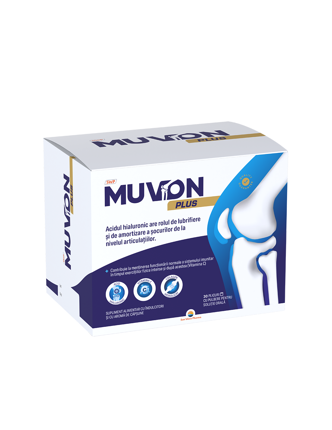 Muvon Plus 30 plicuri este un supliment alimentar premium formulat pentru a susține sănătatea articulațiilor, flexibilitatea și mobilitatea pe termen lung. Conceput cu ingrediente atent selectate – colagen hidrolizat, hialuronat de sodiu și vitamina C – produsul acționează sinergic pentru întărirea structurii articulare și ameliorarea rigidității cotidiene.
