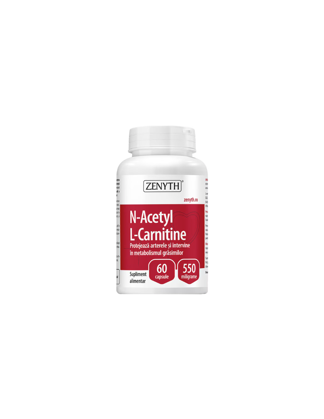 N-Acetyl L-Carnitine de la Zenyth este un supliment alimentar care furnizează 550 mg de carnitină acetilată pe capsulă. Acest compus este implicat în metabolismul lipidelor, transportul acizilor grași în mitocondrii pentru producerea de energie și susține performanța fizică și neuronală.