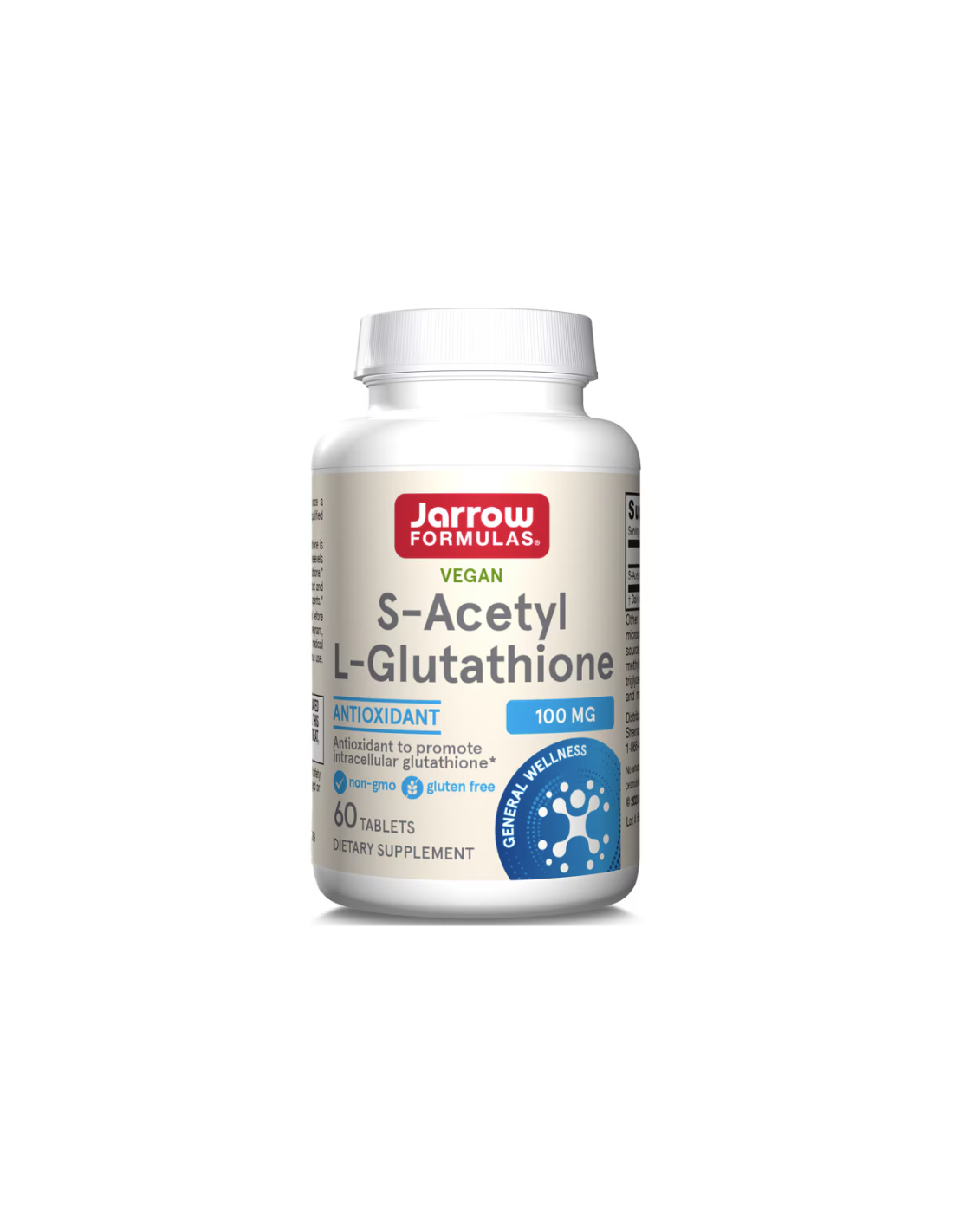 Jarrow Formulas S-Acetyl L-Glutathione 100 mg – 60 tablete este un supliment antioxidant avansat, care oferă o formă acetilată a glutationului (S-Acetyl L-Glutathione), cu o stabilitate mai bună comparativ cu glutationul simplu.*