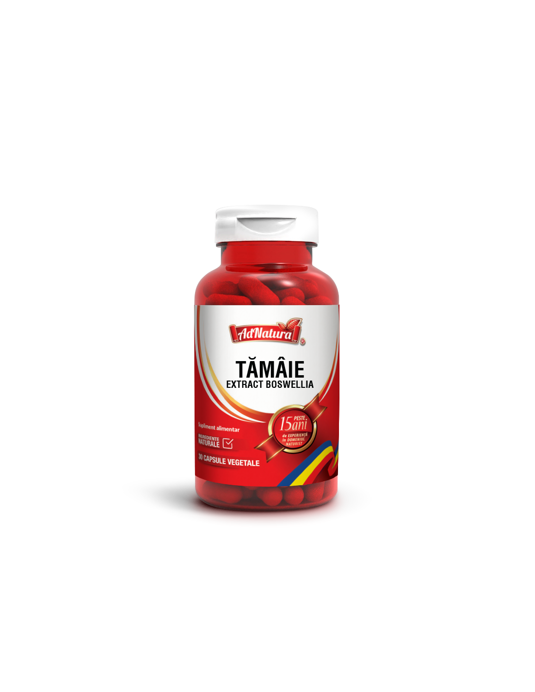 Tămâie (Boswellia) Extract – 30 capsule de la AD NATURA este un supliment alimentar care conţine extract standardizat din răşina uscată a plantei Boswellia serrata, cunoscută pentru proprietăţile sale în susţinerea sănătăţii articulaţiilor, flexibilităţii oaselor şi mobilităţii normale.