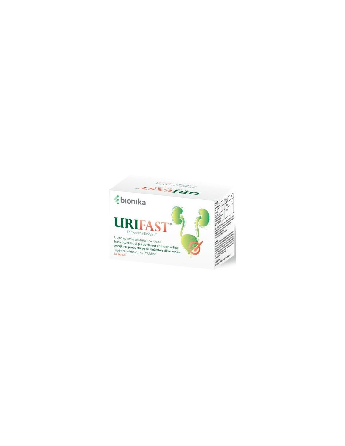 Urifast – 14 plicuri este un supliment alimentar ce susține sănătatea tractului urinar, combinând D-Manoza și Exocyan™ (extract standardizat din merișor-canadian).