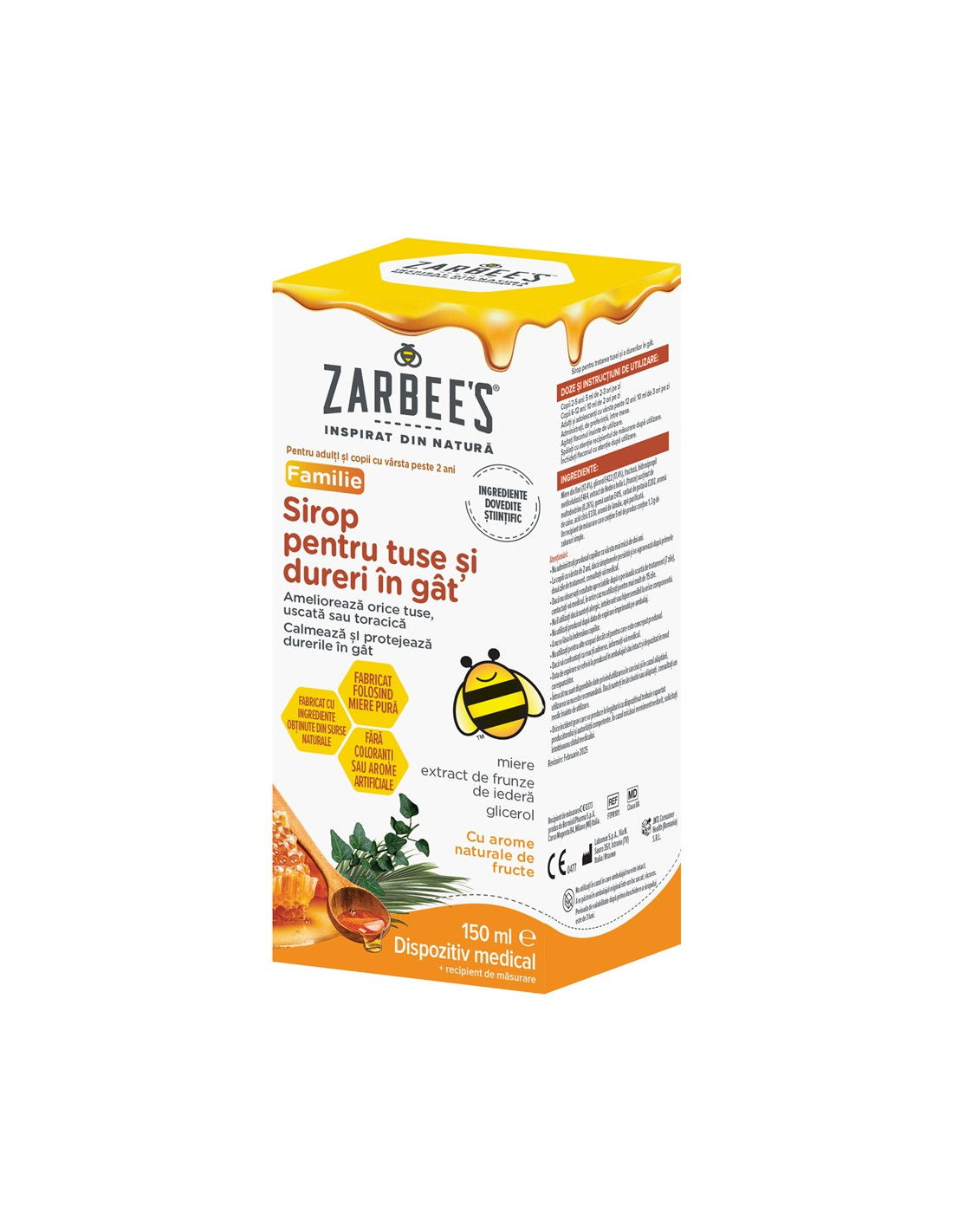 Zarbee’s Sirop pentru Tuse & Gât 150 ml este un sirop natural destinat ameliorării tusei (uscată sau productivă) și iritației gâtului. Formula sa conține ingrediente precum mierea pură, extract de iederă și glicerină, menite să calmeze și să protejeze mucoasa iritată.
