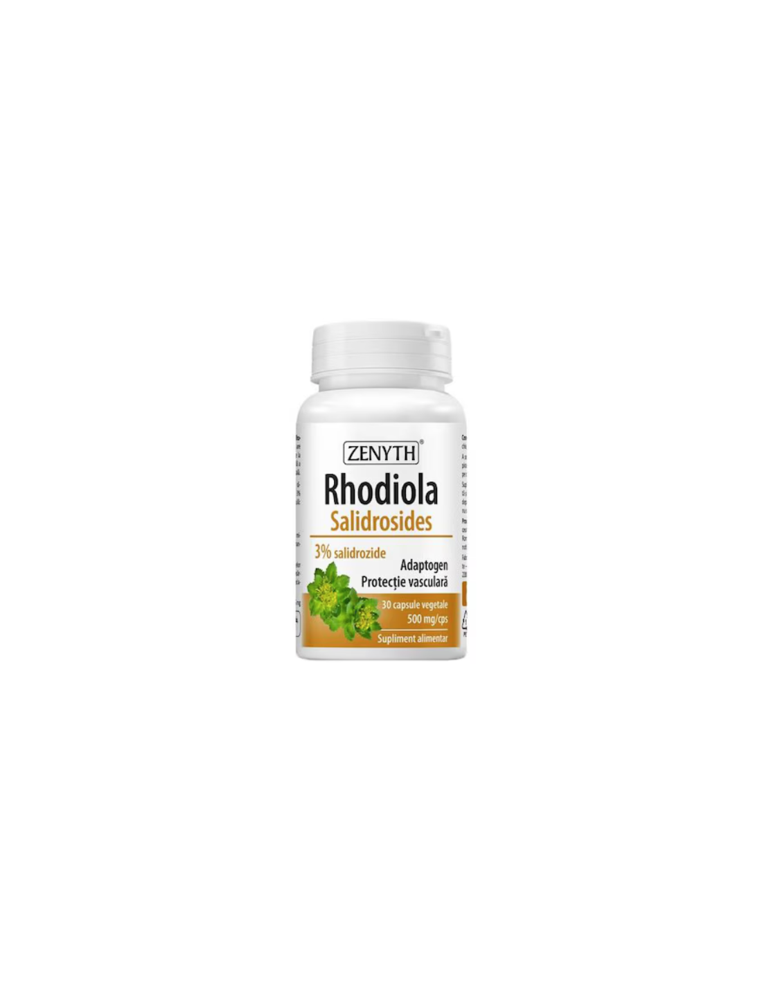 - Extract din rădăcină de Rhodiola rosea – 500 mg, standardizat 3 % salidrozide + 0,4 % rozavine