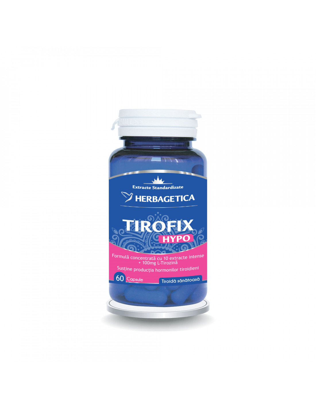 Tirofix Hypo este un supliment natural complex formulat pentru a susține funcționarea glandei tiroide, producția hormonilor tiroidieni și nivelul de energie.