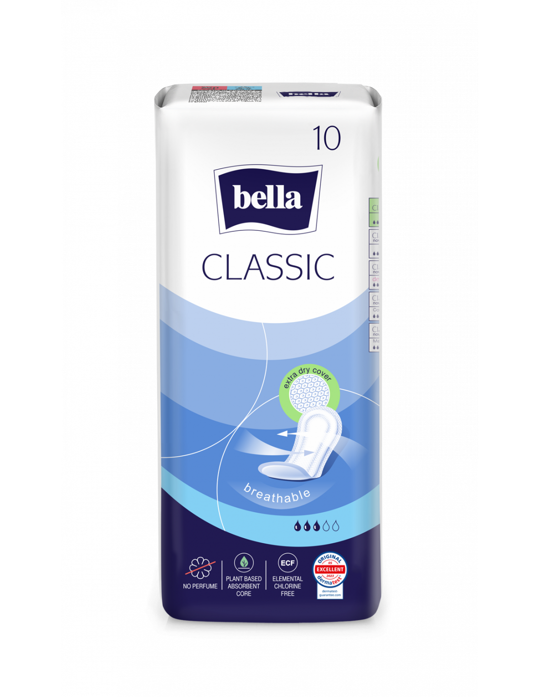 Bella absorbante Classic, 10 bucati sunt absorbante igienice clasice cu grosime traditionala si suprafata tip plasa, concepute pentru absorbtie rapida si confort in timpul menstruatiei.