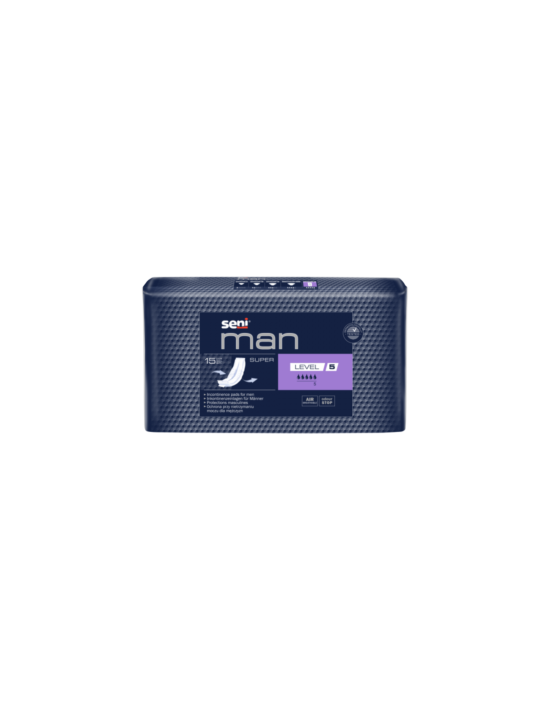 Seni Absorbante urologice Man Super Level 5 x 15 buc ofera siguranta si incredere in activitatile zilnice, mentinand pielea uscata si protejata.