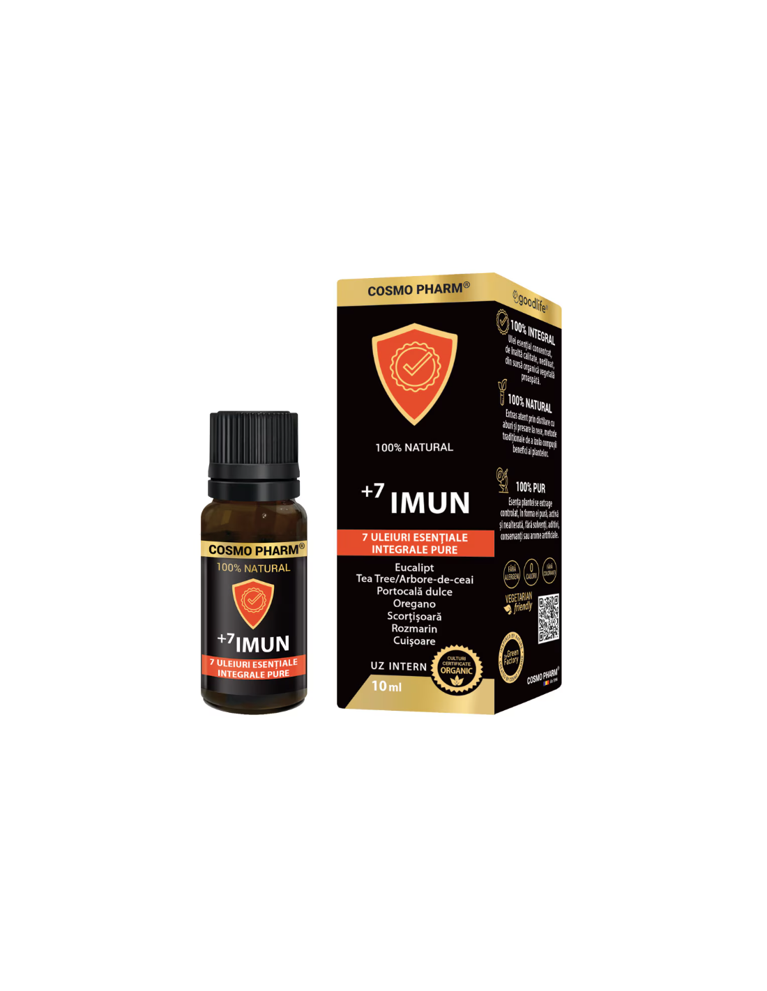 +7 IMMUN 10 ml este un mix de uleiuri esențiale integrale, creat pentru sprijinul sistemului respirator și imunitar.