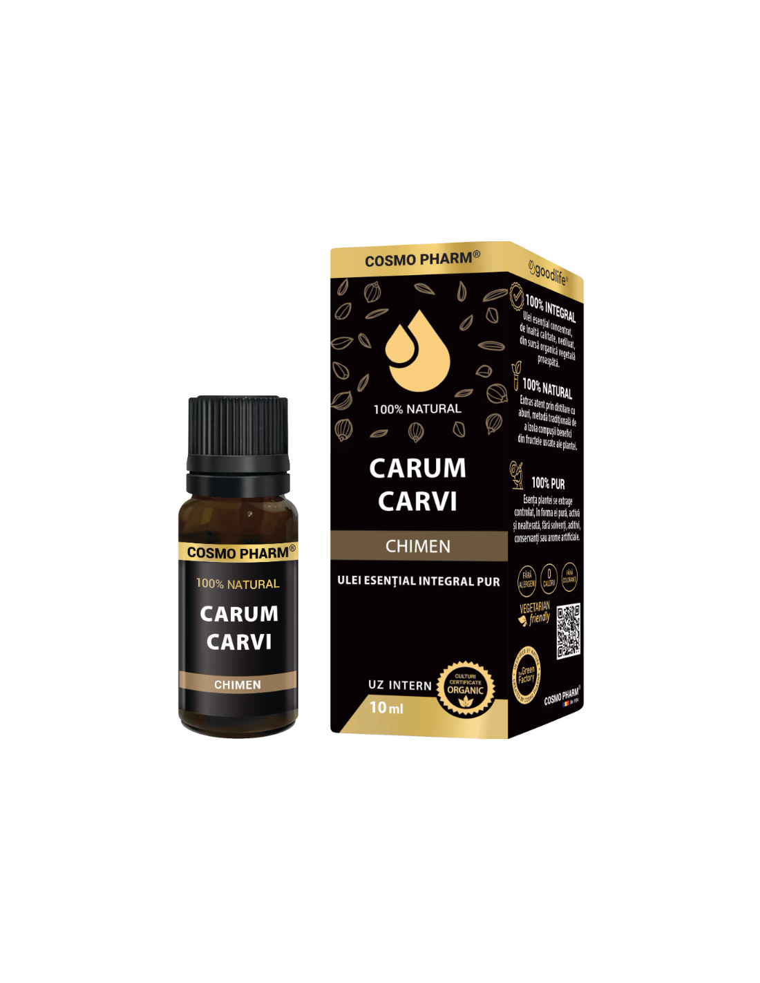 Ulei esențial integral pur de Chimen (Carum carvi) 10 ml este un ulei esențial 100 % natural, extras prin distilare cu abur din semințele plantei Chimen.