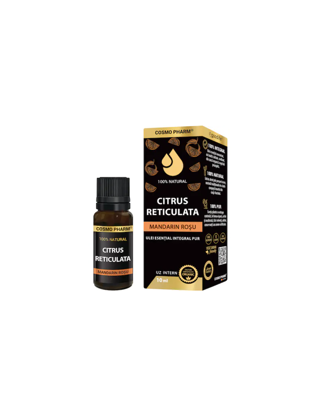 Ulei esențial de Mandarin Roșu (Citrus reticulata) 10 ml este un ulei esențial integral 100 % natural, extras prin procedee controlate pentru a păstra compușii aromatici activi.