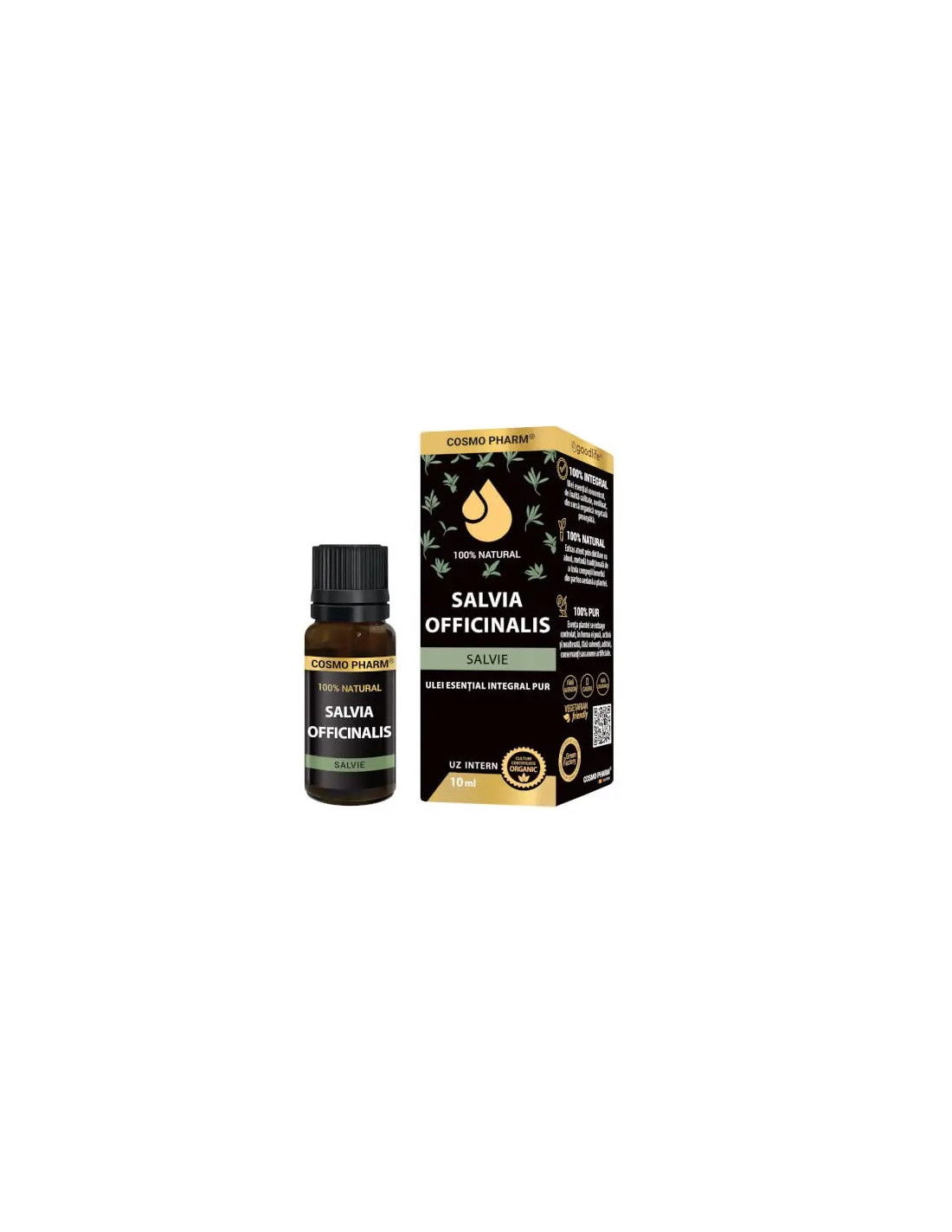 Ulei esențial integral de Salvie (Salvia officinalis) 10 ml este un produs 100 % natural, integral, extras prin distilare cu abur din planta Salvia officinalis. Este utilizat în aromaterapie, uz extern și, diluat corespunzător, pentru beneficii interne.