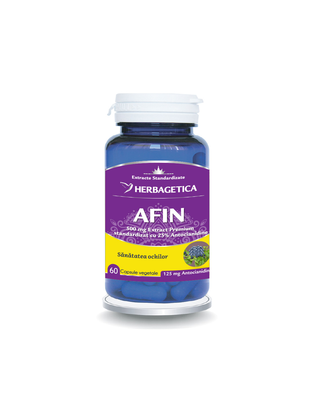 - Extract Afin (Vaccinium myrtillus), 500 mg, standardizat 25% antocianidine