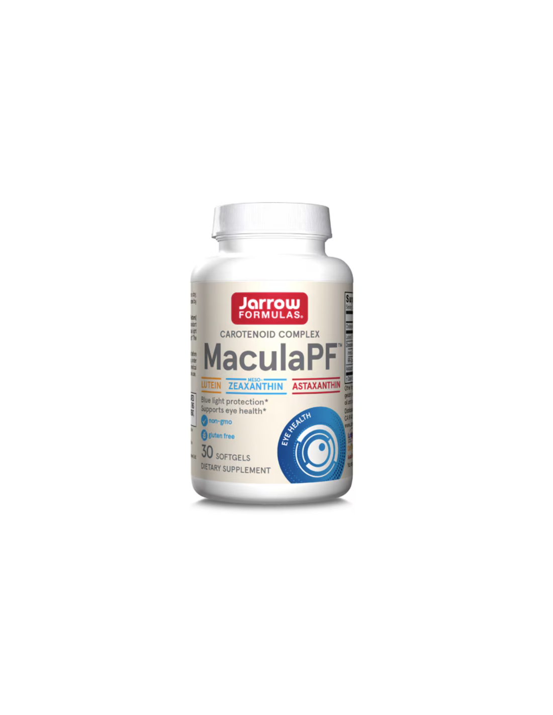 Jarrow MaculaPF (Protective Factors) – 30 softgels este un supliment special creat pentru protecția ochilor, combinând trei carotenoide esențiale — luteină, zeaxantină (incluzând meso-zeaxantină) și astaxantină — pentru a susține sănătatea maculei și pentru a reduce impactul luminii albastre provenite din ecrane, LED-uri și soare.