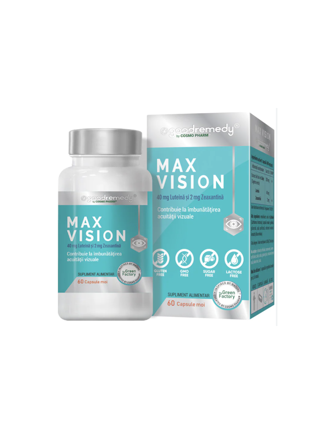 Max Vision Good Remedy – 60 capsule este un supliment alimentar conceput pentru susținerea sănătății ochilor, oferind cantități semnificative de luteină și zeaxantină.