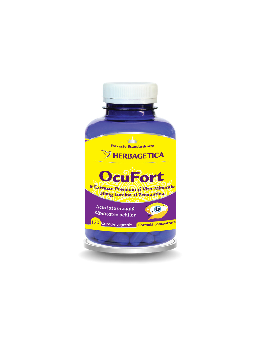 OcuFort – Herbagetica este un supliment premium creat pentru protecția completă a ochilor și susținerea acuității vizuale, oferind o combinație puternică de Luteină 25 mg, Zeaxantină 5 mg, extracte antioxidante și nutrienți esențiali pentru menținerea sănătății retinei.